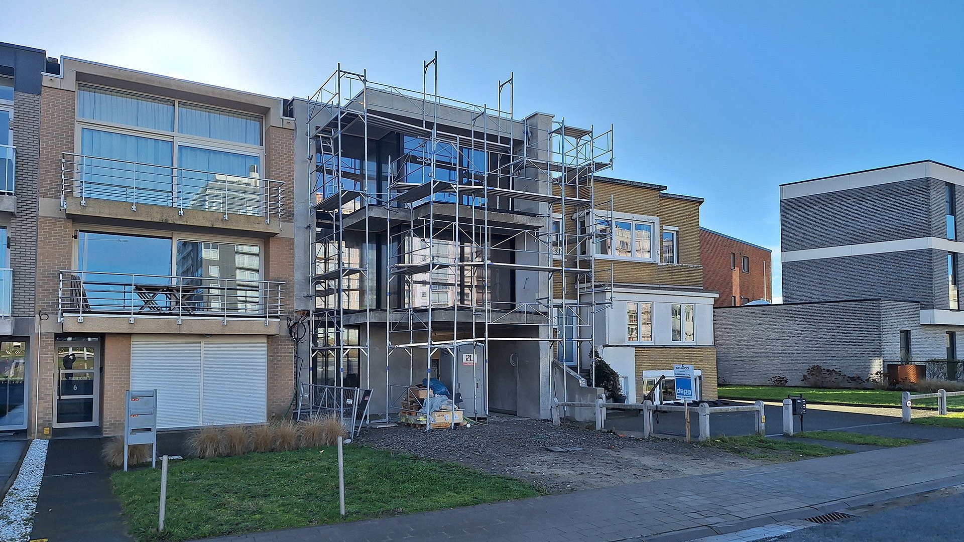 De nieuwe residentie integreert zich met zijn volume en materiaalgebruik tussen 2 bestaande buurgebouwen met een verspringende bouwlijn. De wachtmuur die de aansluiting met de rechterbuur mogelijk maakt, geeft het project een unieke karakteristieke uitstraling. Langsheen deze wachtmuur is er een open doorrit met kassei klinkers die tevens fungeert als inkomhal van het gebouw.