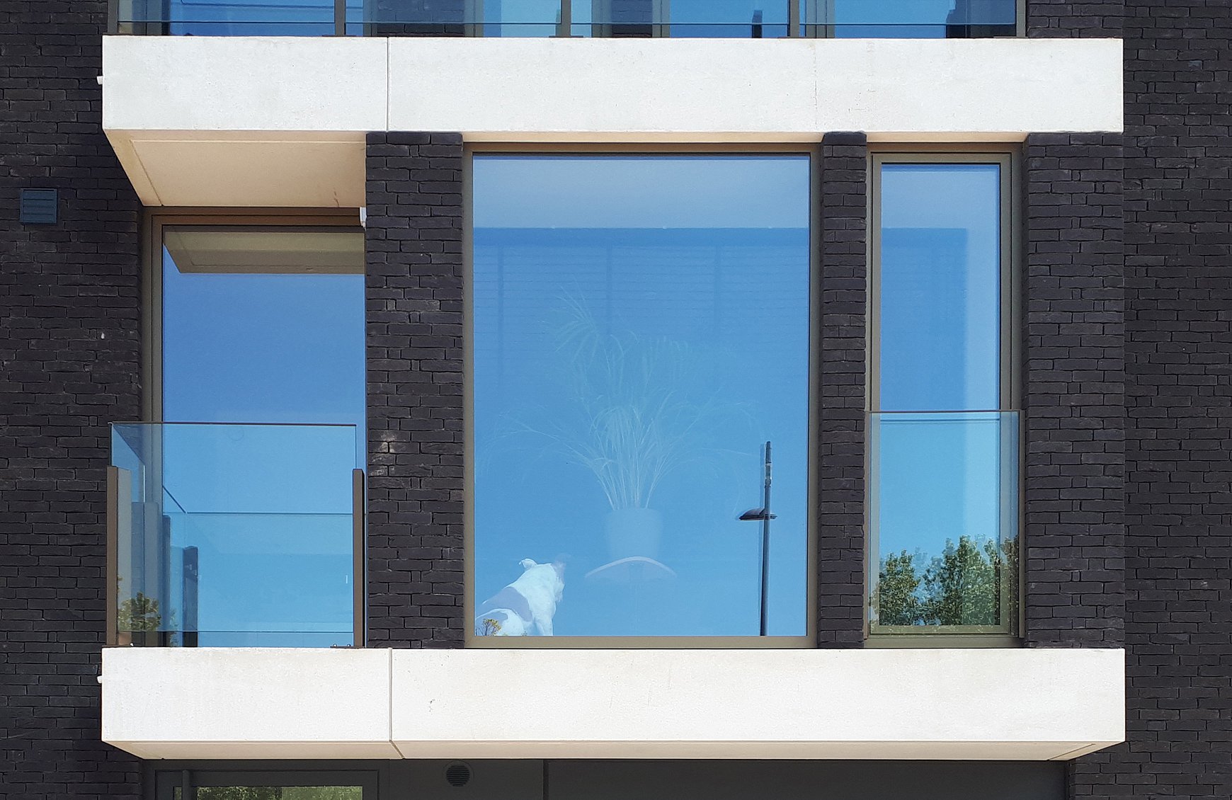 Speels verspringende glaspartijen zorgen voor een luchtig en transparant beeld in de straat. De daken worden voorzien van kleine dakuitbouwen die qua vormentaal aansluiten bij de voorgevel.