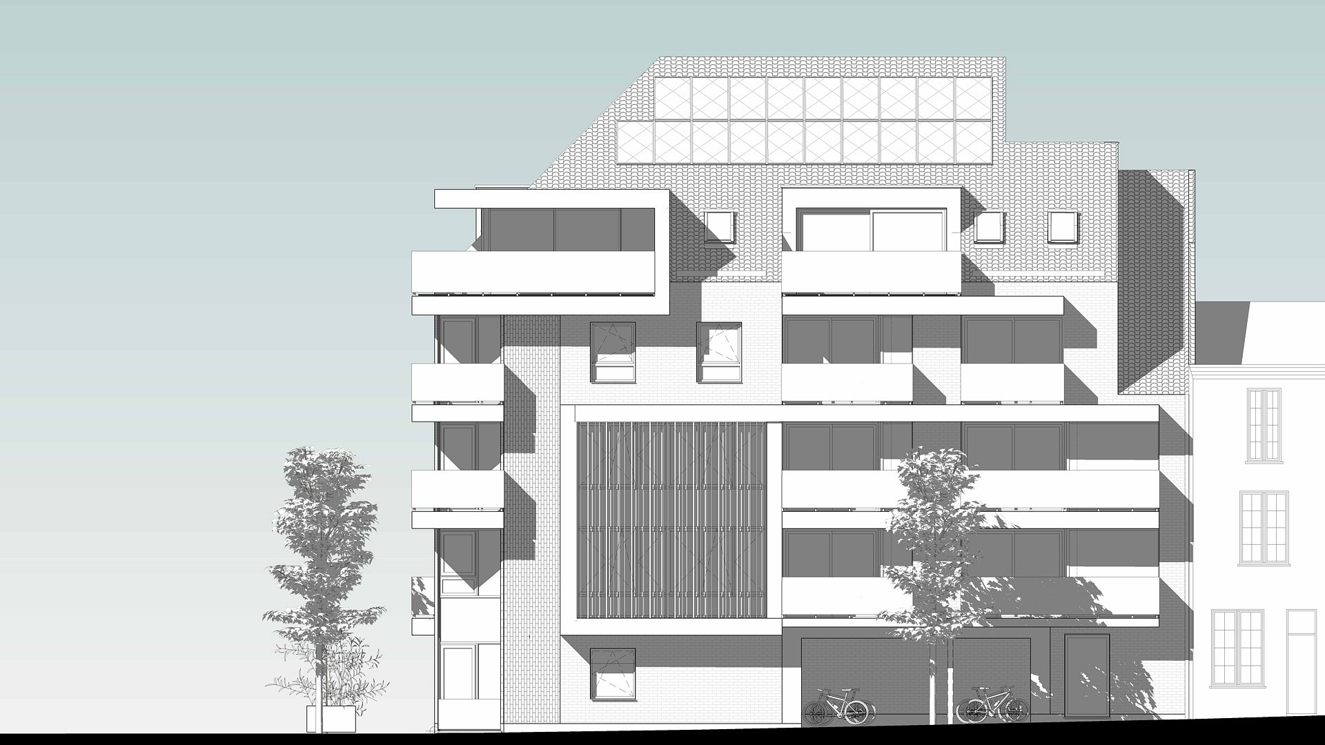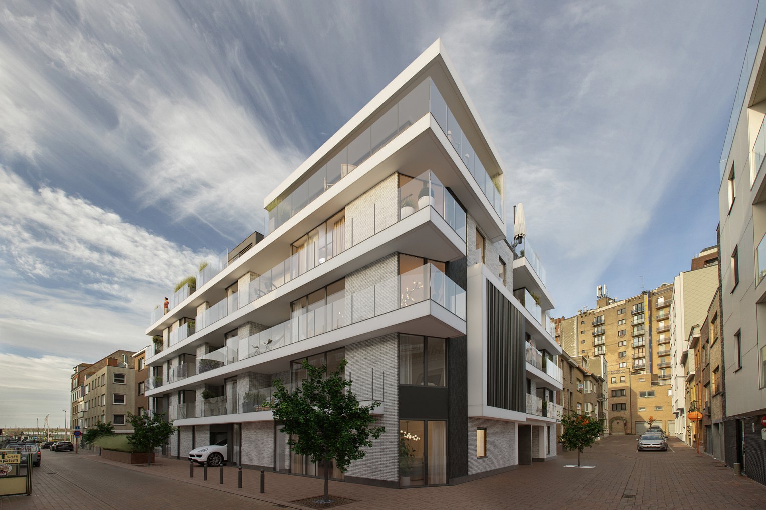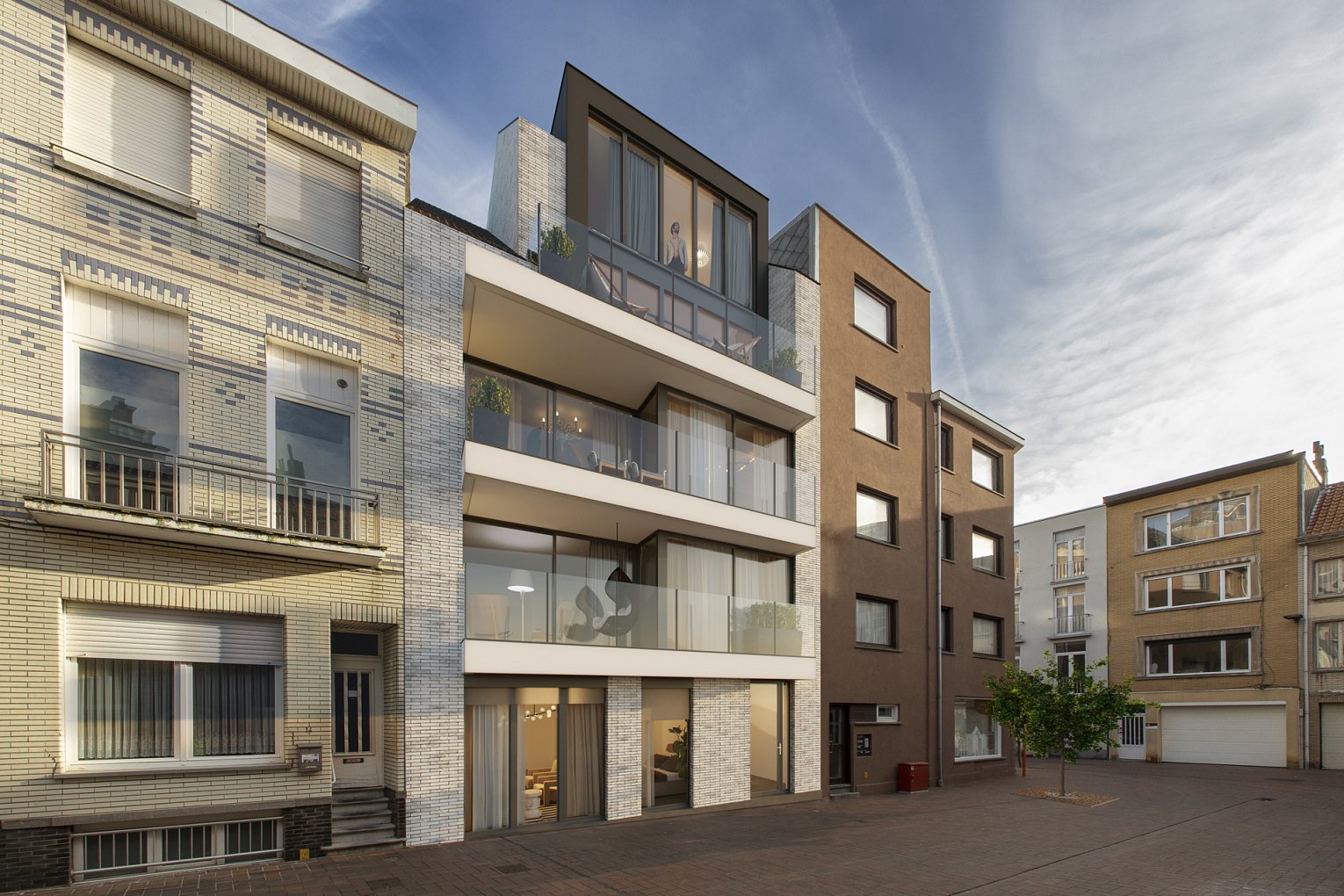 Het project met 28 appartementen wordt getypeerd door het gevarieerd woonaanbod, gecombineerd met grote leefterrassen wat ten voordele komt van het sociale contact tussen bewoners en openbaar domein.