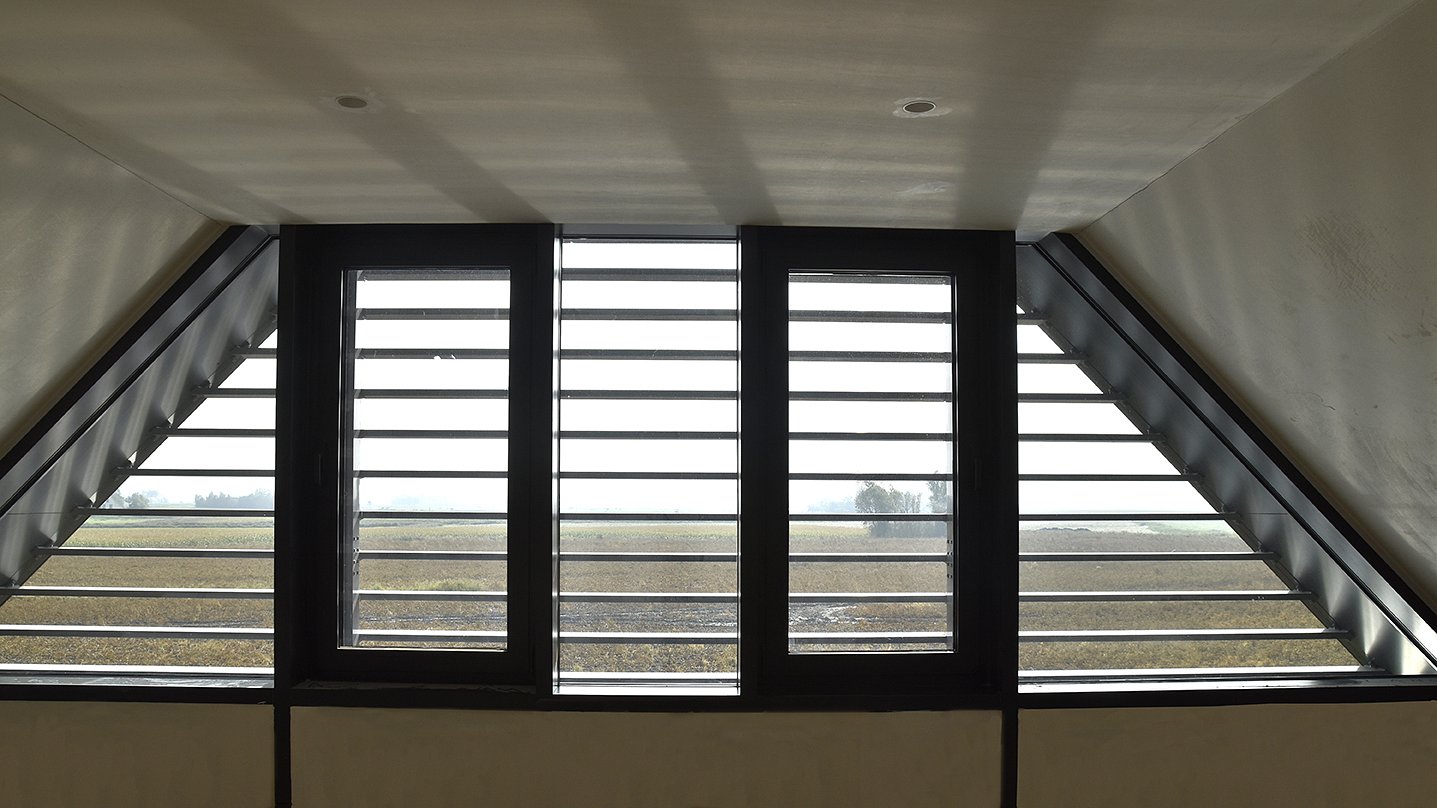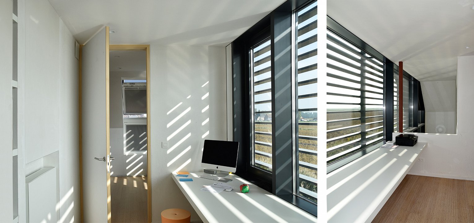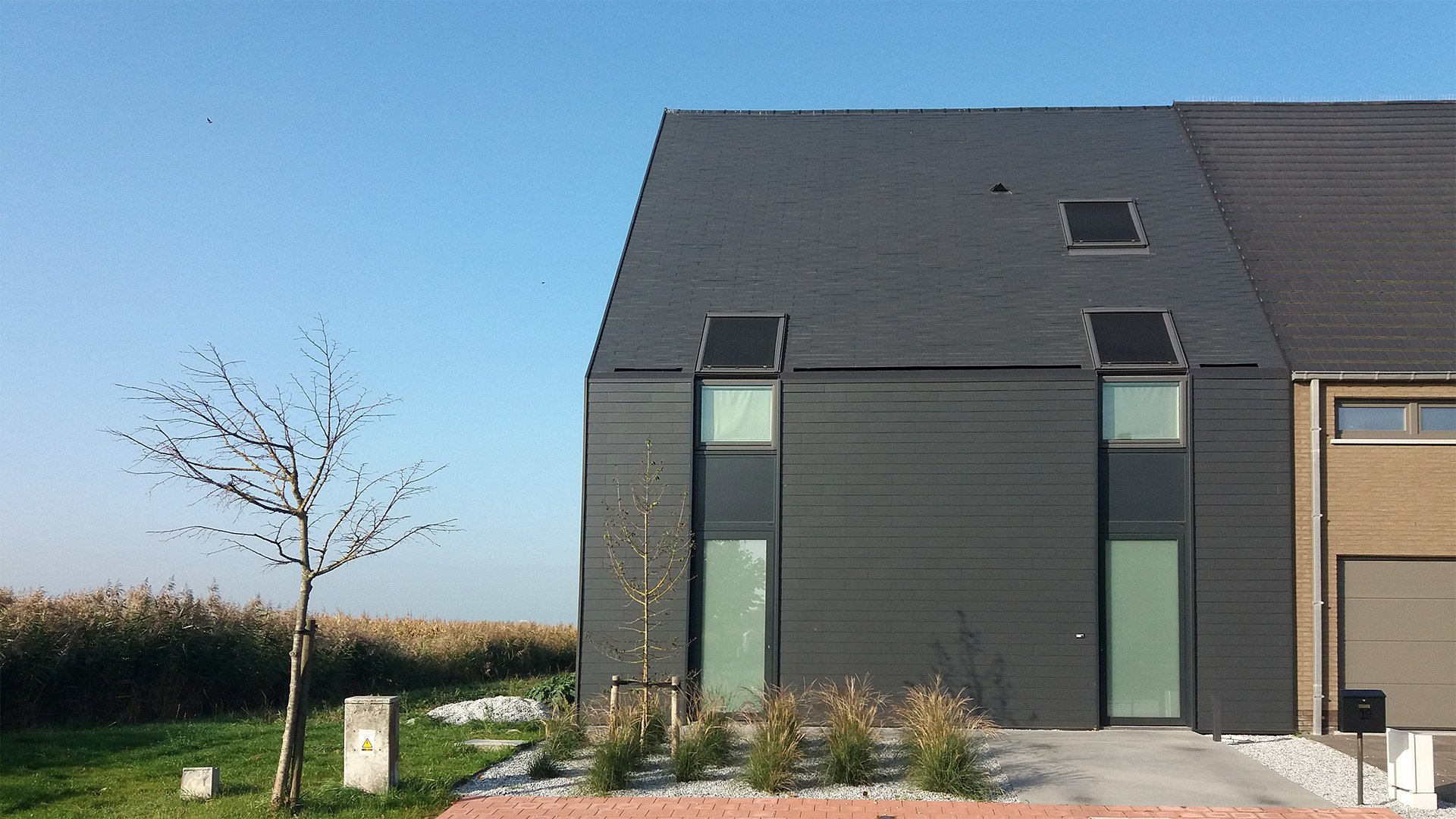 Het perceel bevindt zich op het einde van een doodlopende straat met 180 graden uitzicht op de Uitkerkse Polders. Het was de bedoeling om een zo compact mogelijk volume te realiseren. De voor- en achtergevel worden vrij gesloten gehouden. De zuidgerichte zijgevel met zicht op het mooie polderlandschap wordt zoveel mogelijk opengewerkt door middel van een gordijngevel die voorzien is van lamellen.