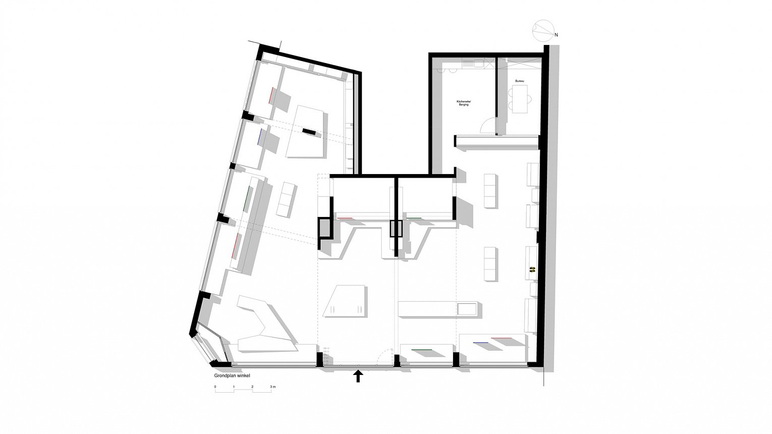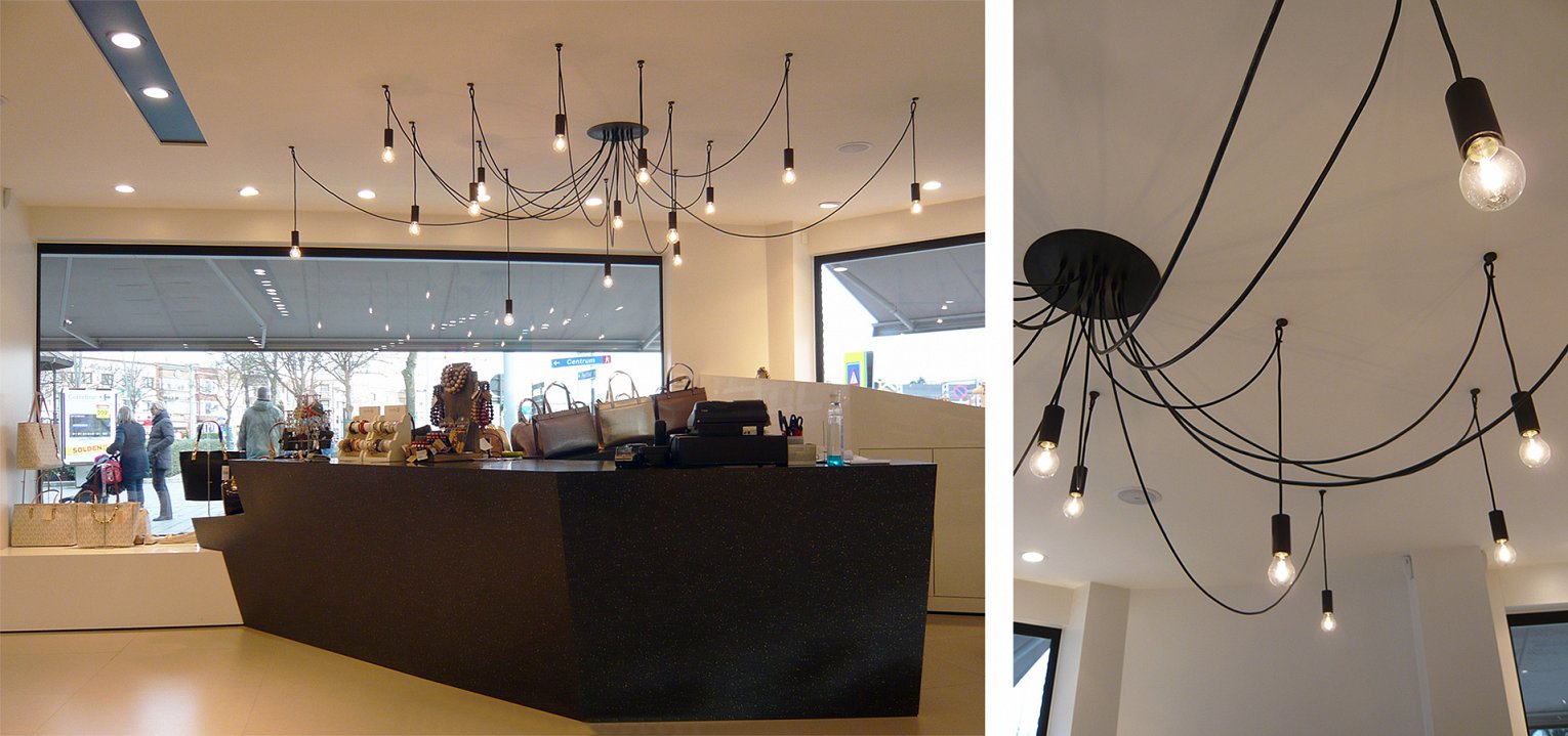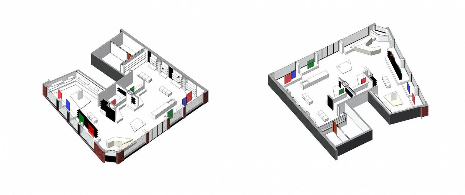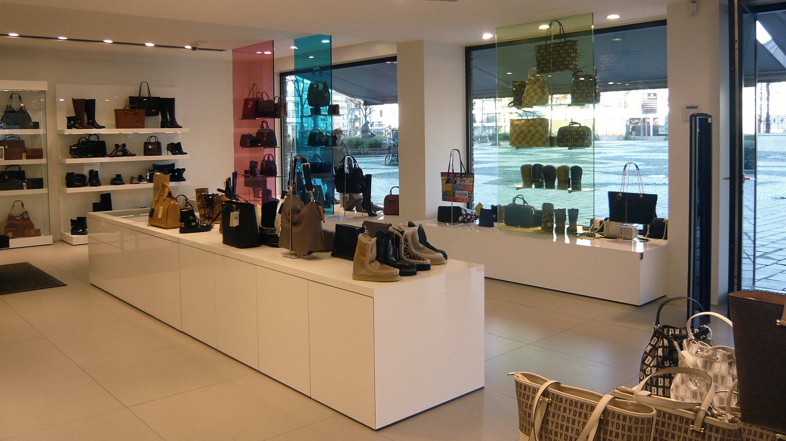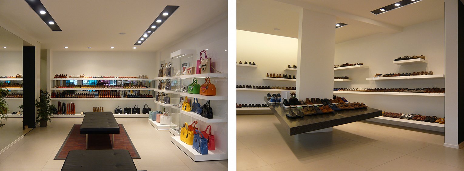 In de winkelruimte vormen sterke accenten zoals zwevend schuin aflopend presentatietafel of verrijdbare presentatietafel en 3D gesculpteerde balie voor de nodige aandacht om het winkelen attractief te maken.