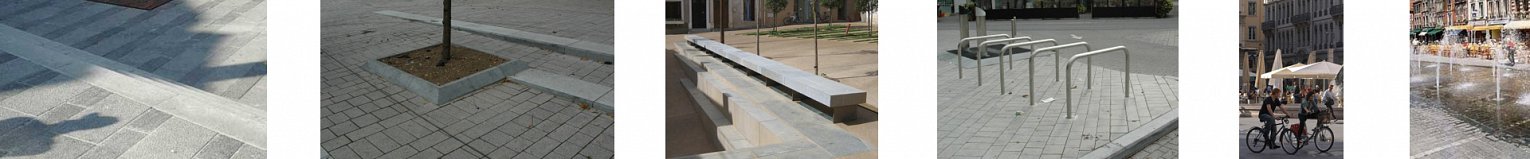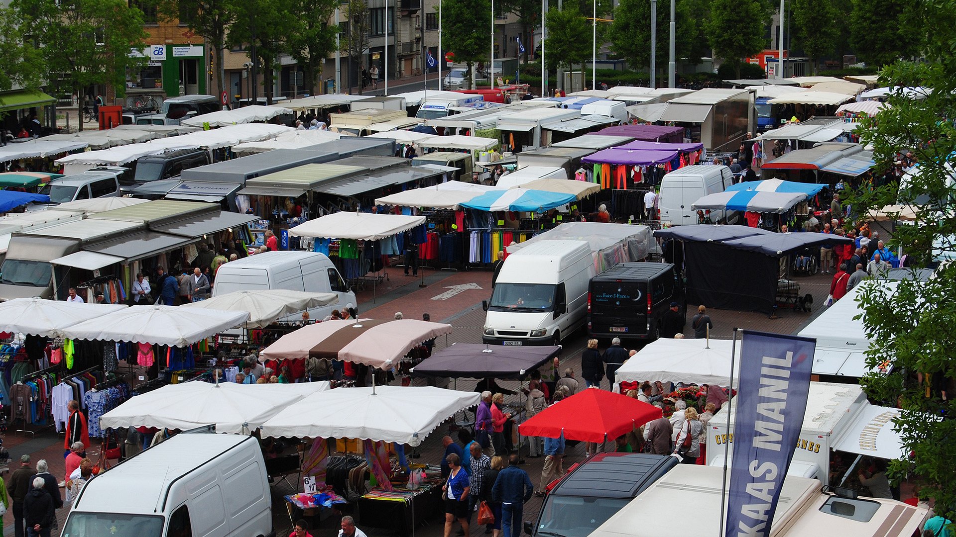 Door afstand tussen bomenrijen en randbebouwing te vergroten, wordt het mogelijk riante terrassen te voorzien aan de horecazaken op de markt. Eén enkel type parasols wordt toegelaten waardoor de eenheid van het marktplein wordt versterkt.
