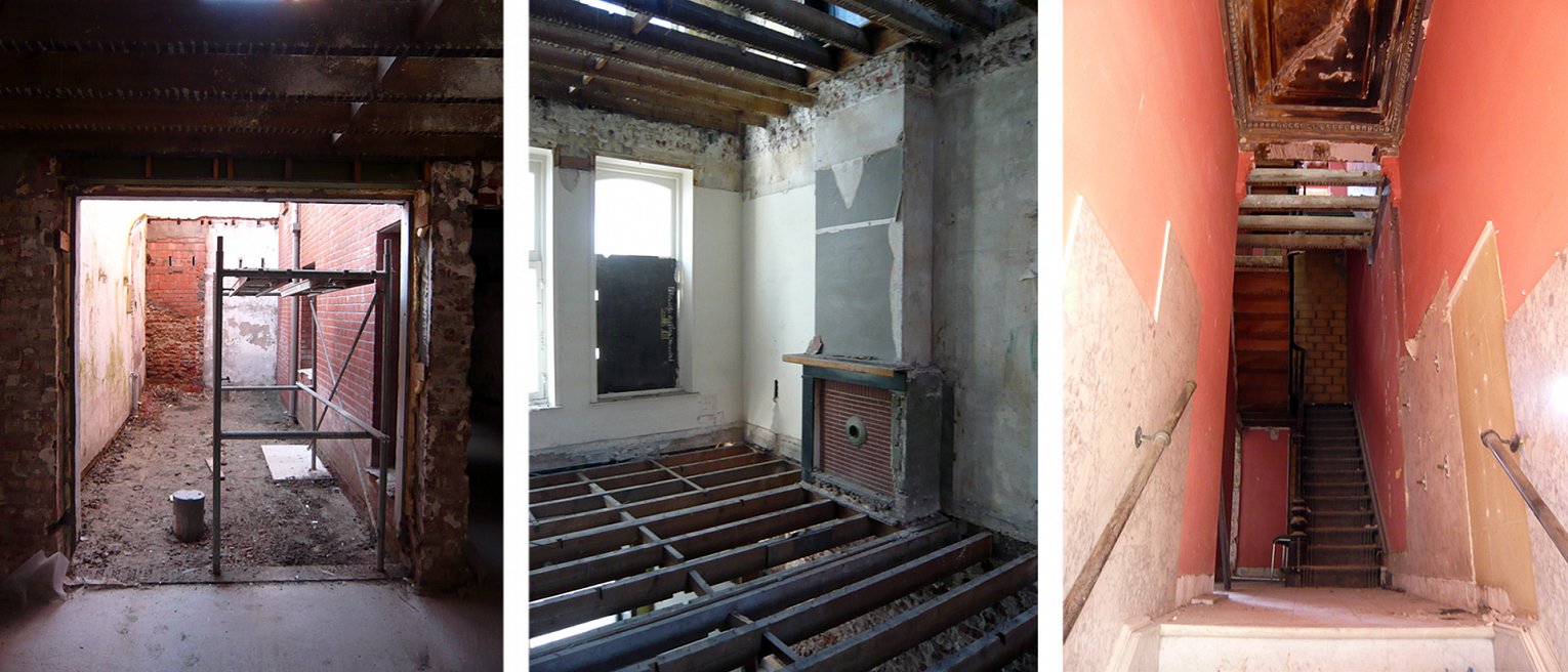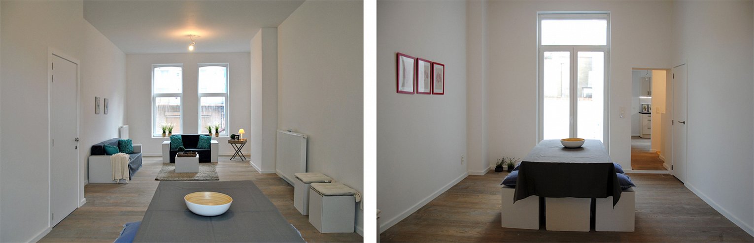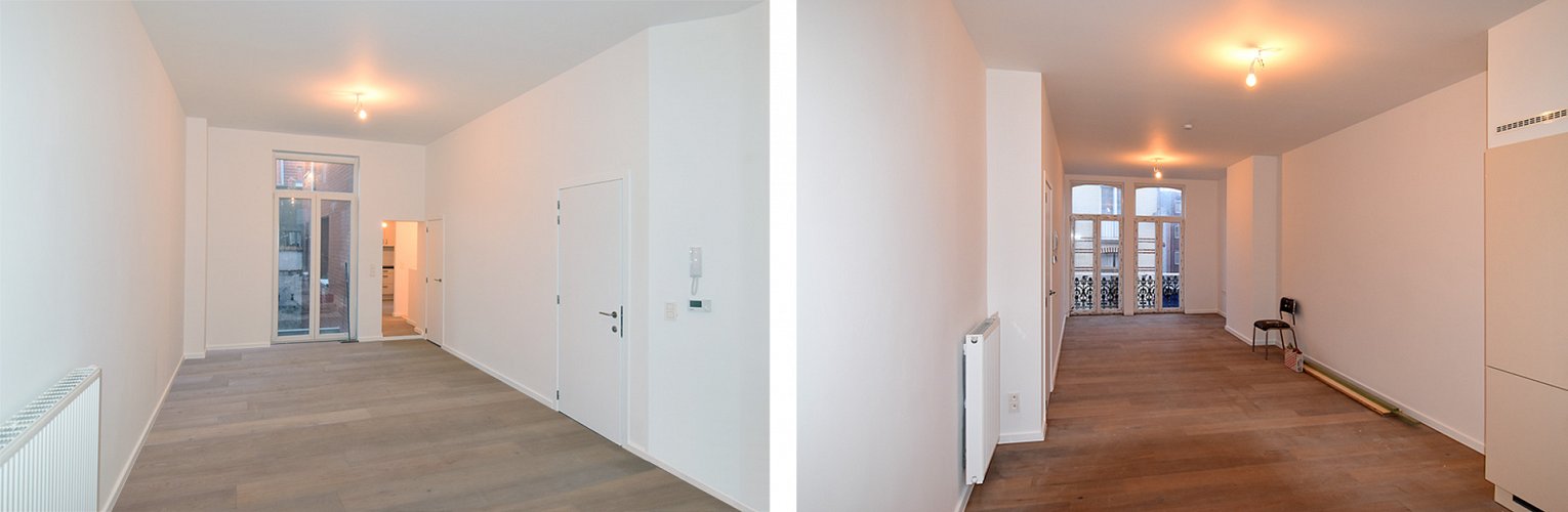 Een grote oude rijwoning met een historisch waardevolle voorgevel wordt grondig aangepakt. Zes woonentiteiten, waaronder twee kleine studio’s achteraan ruimen nu plaats voor drie comfortabele en kwalitatieve appartementen met elk hun eigen buitenruimten.