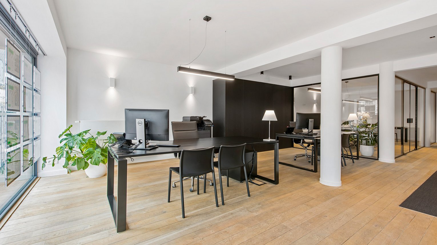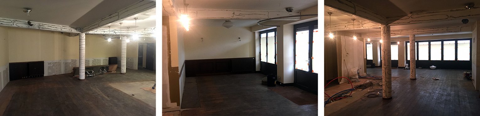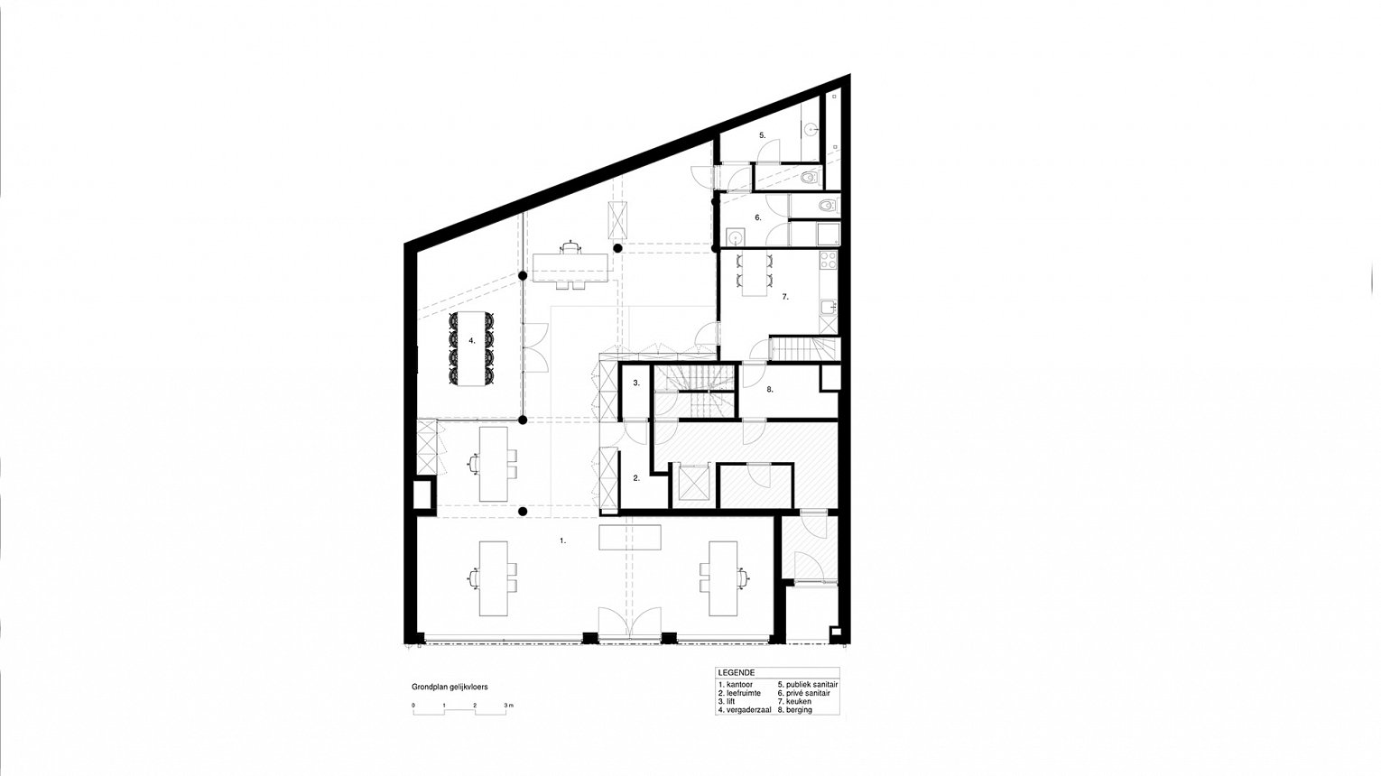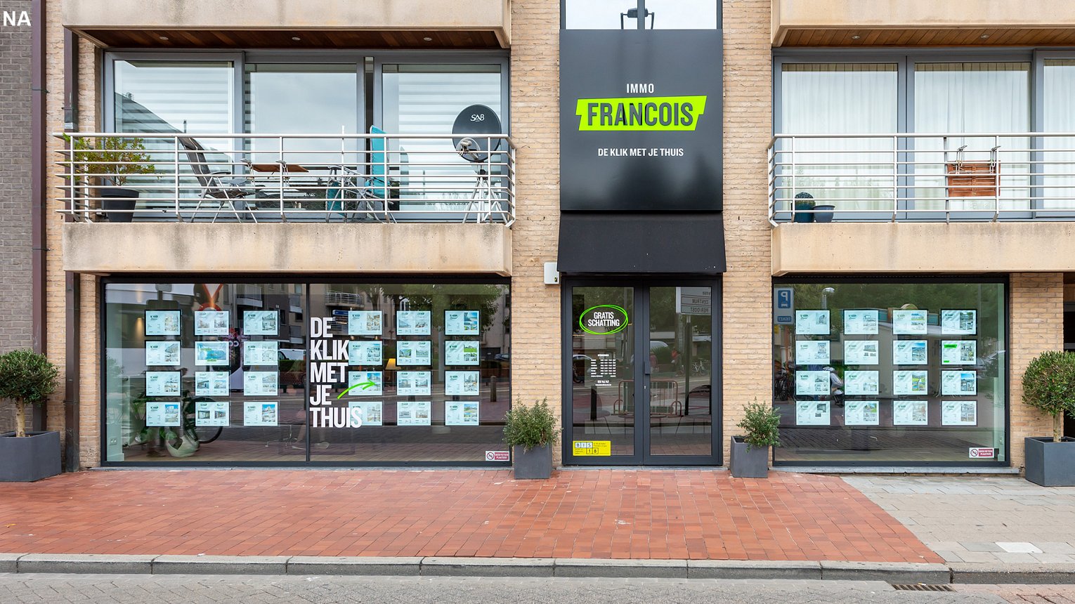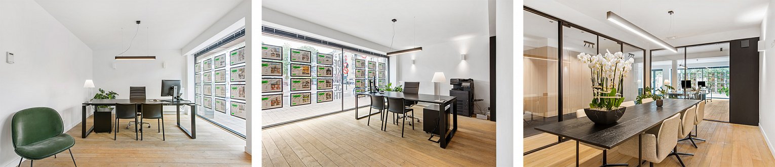 De handelsruimte die voordien fungeerde als café werd herbestemd naar een immobiliënkantoor.