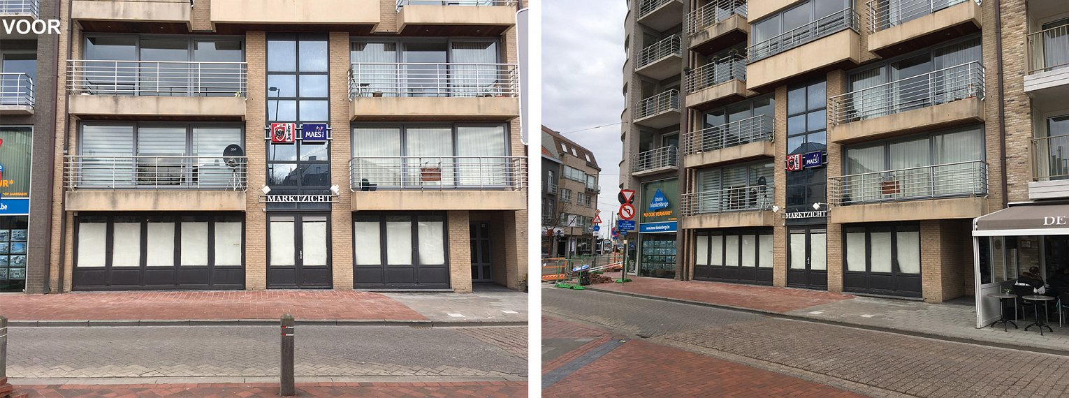 Aan de voorgevel wijzigt enkel de invulling van het buitenschrijnwerkgeheel van het betreffende handelsgelijkvloers. Intern onderging het pand een grondige make-over.